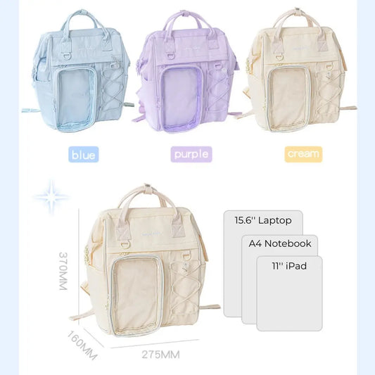 Cream-Style Large Capacity Schoolbag with A Window
