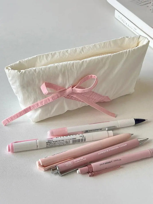 Cute Creamy Cloud Bow Pencil Pouch