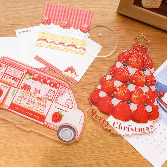 Strawberry Christmas Tree/Dining Car Acrylic Note Holder Stand