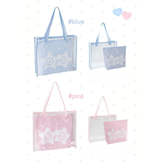 Oversized Transparent Tote with Inner Woven Bag