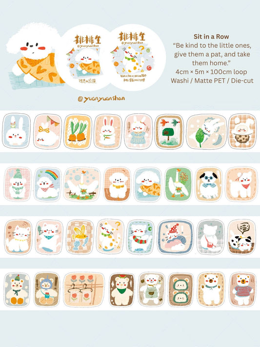 Original Sit in a Row die-cut washi / matte PET Sticker Tape