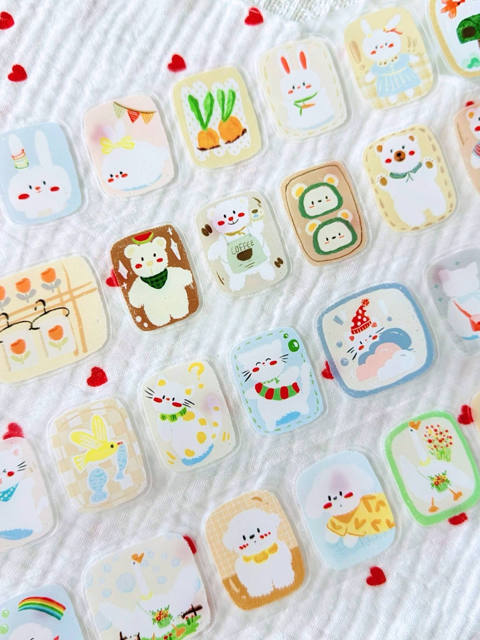 Material: Special Oil Washi + Die-cut / Matte PET + White Ink + Die-cut