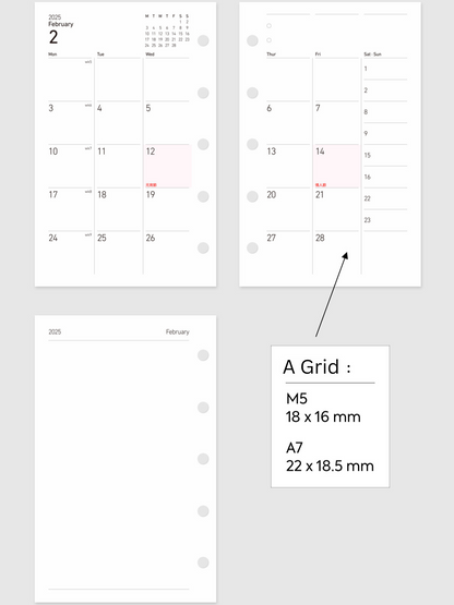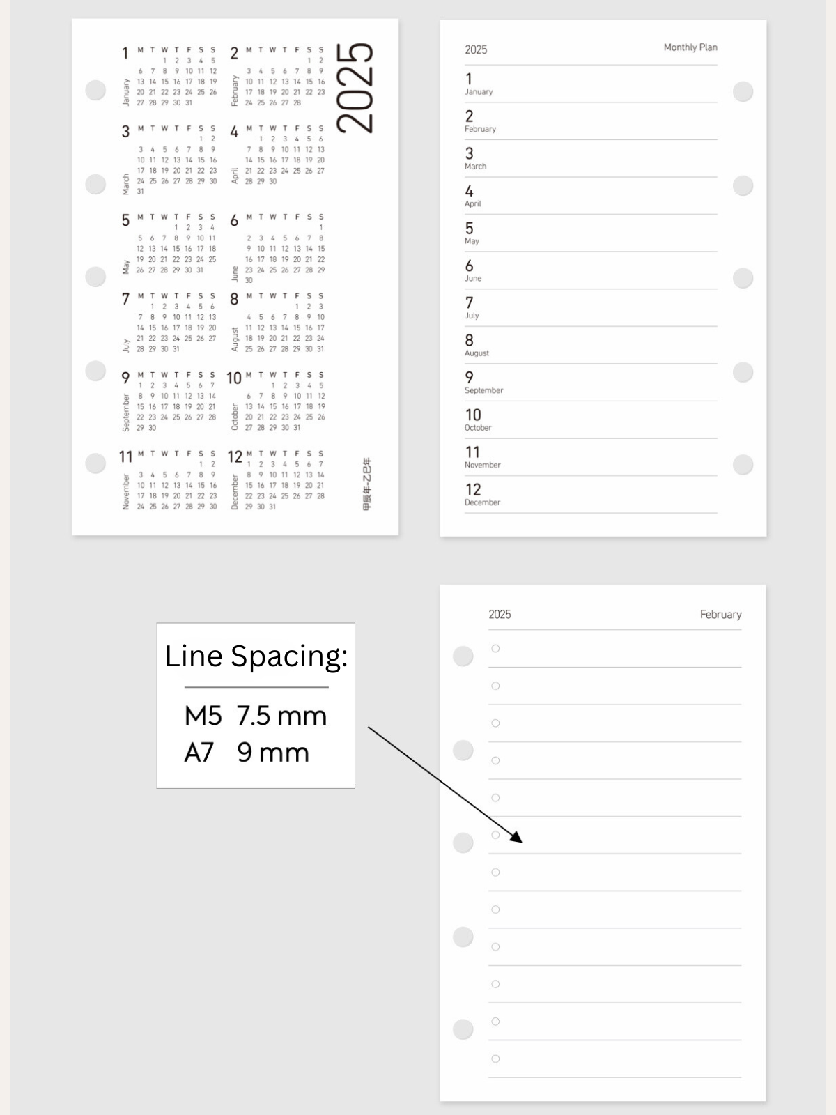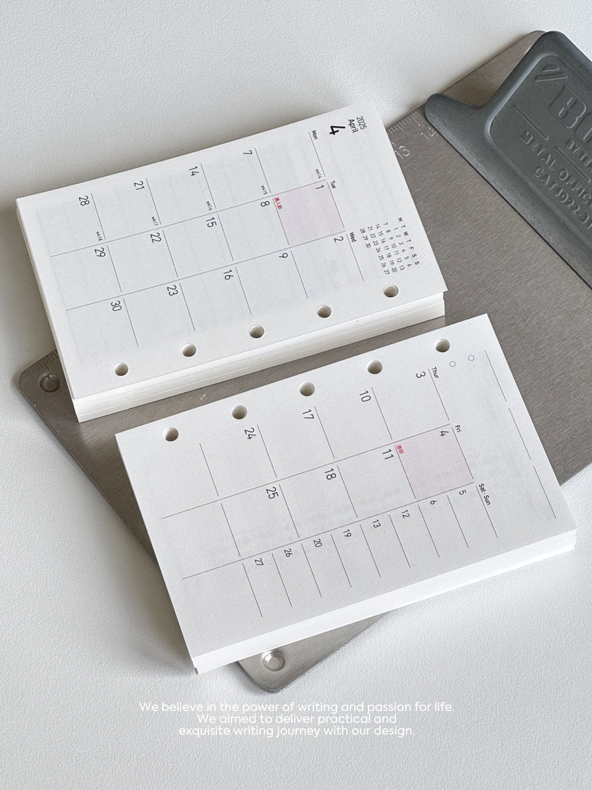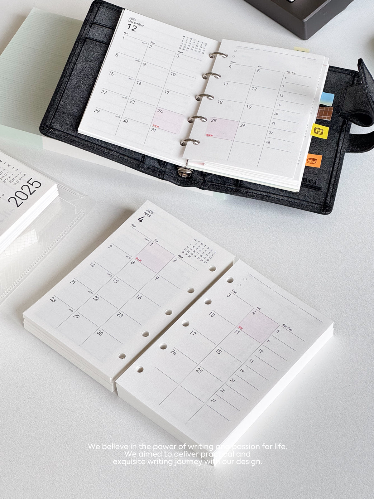 2026 Monthly Planner Loose-Leaf Inner Core – M5/A7/A6per