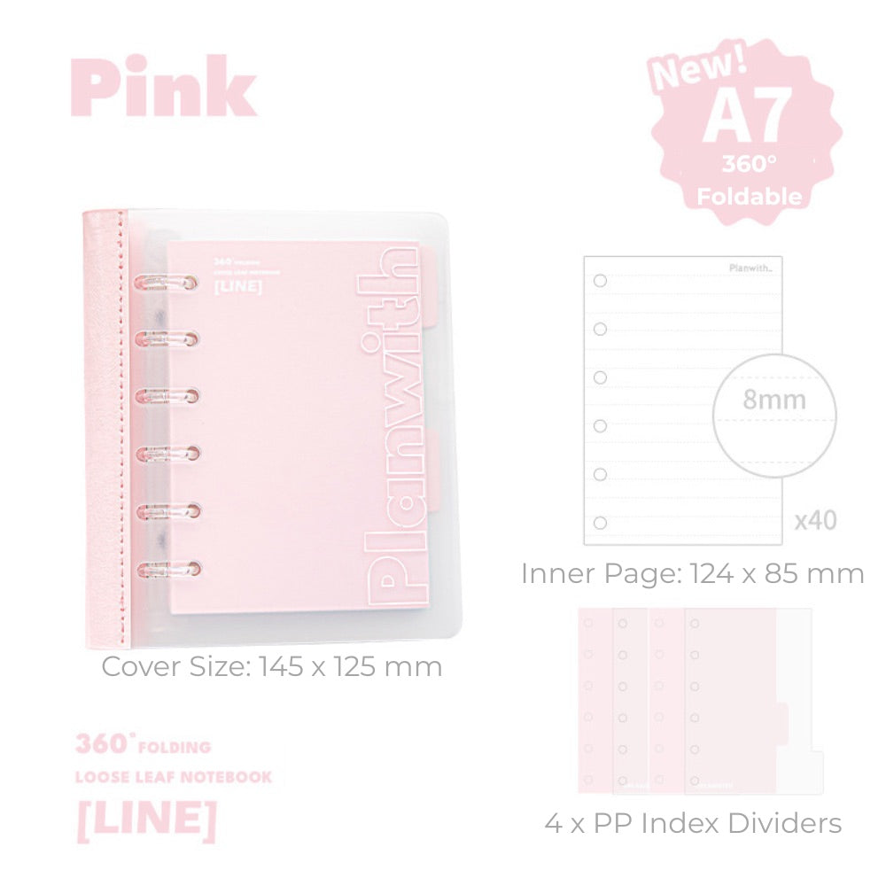 - Innovative 360° Foldable Design: Engineered with a Soft-Touch PU Stitched Spine, this A7 notebook supports a full 360-degree fold-back. Whether you're standing on a crowded subway or working at a tiny cafe table, you can write comfortably with just one hand.