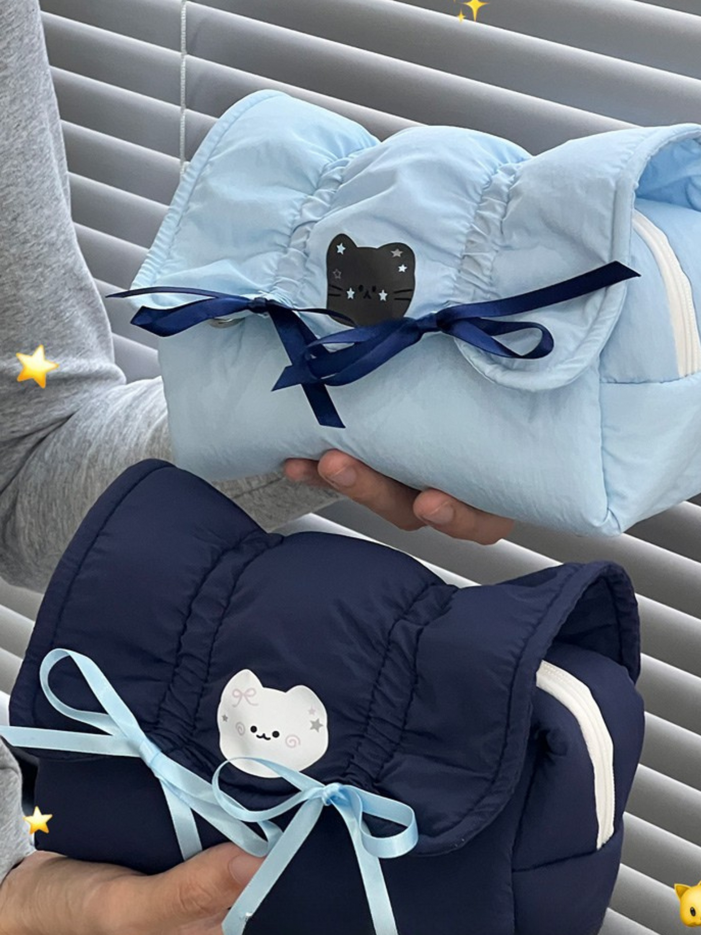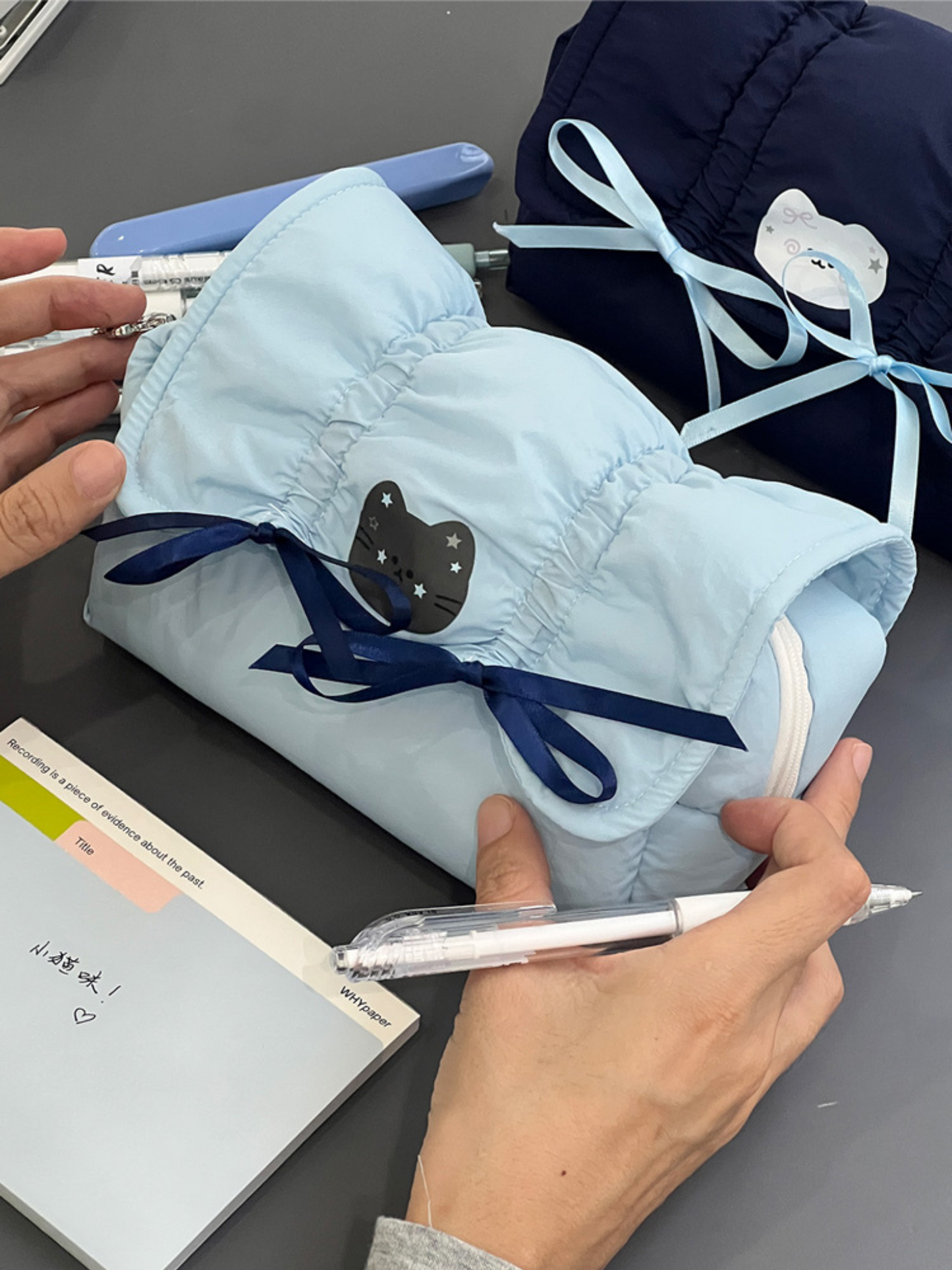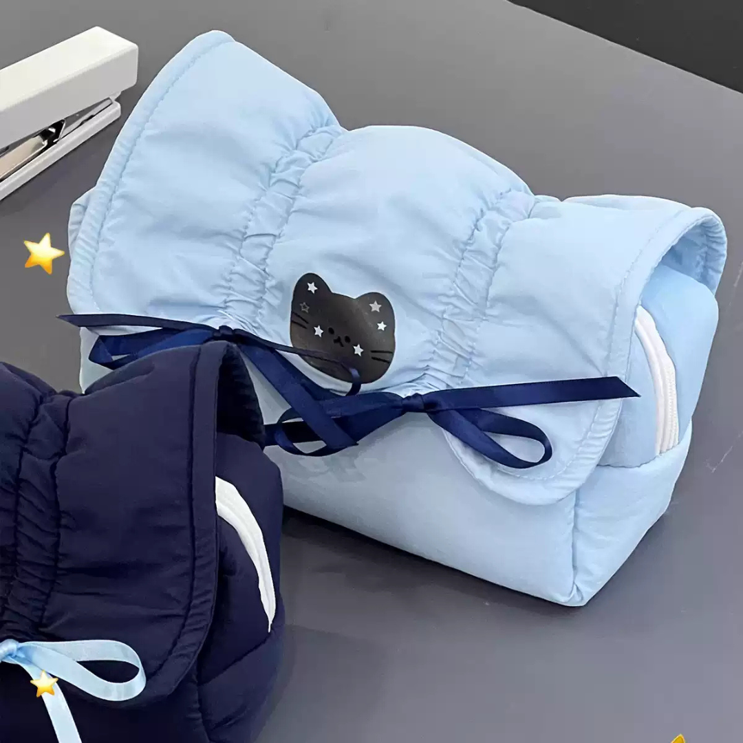Organize your essentials in style with the Cute Creamy Blue Bow Pencil Pouch, the perfect blend of practicality and charm!