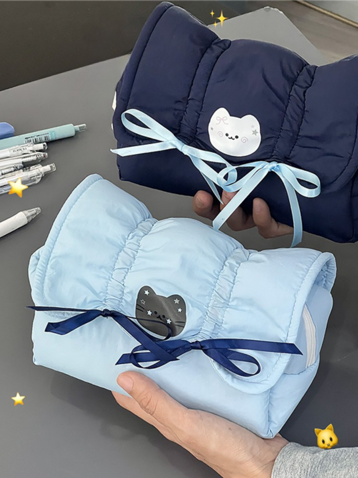 Brighten your desk or bag with the adorable Cat Bow Pencil Pouch! This charming accessory is as functional as it is cute, making it the perfect companion for school, work, or creative projects.