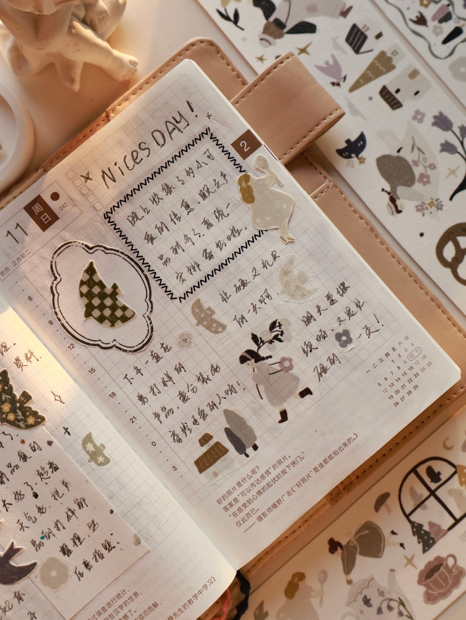 • Matte PET - Design Style: Light retro, hand-drawn illustrations, ideal for seasonal spreads or warm-toned journaling.