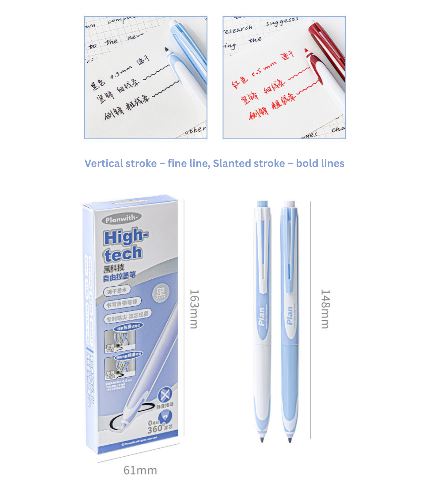 Crafted with patented ink control technology, this pen features a unique nib that adjusts line thickness based on your writing angle: create fine lines with vertical strokes, and bold lines with slanted strokes – all with one pen.