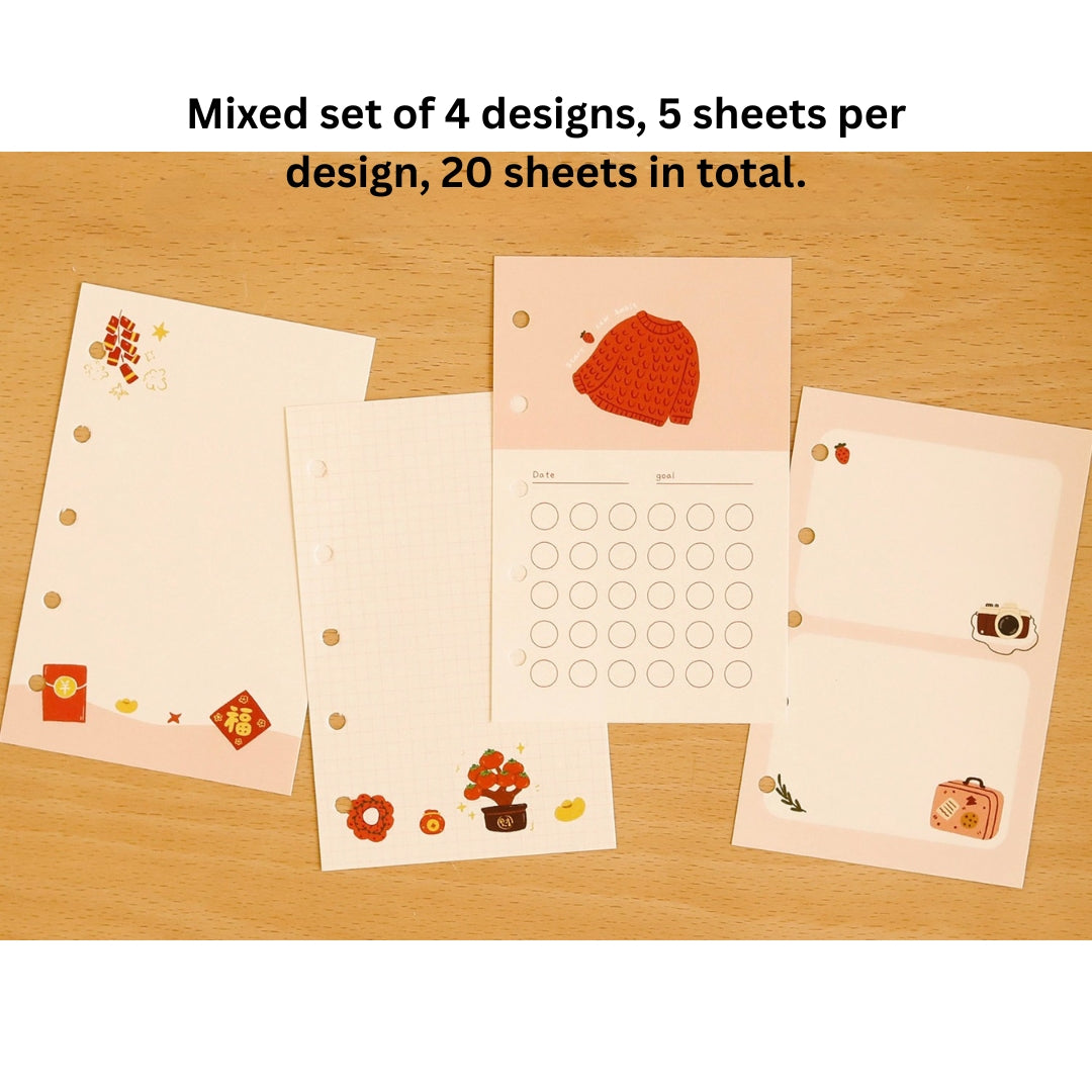 Each pack includes 20 pages with 4 mixed designs (5 sheets per design), featuring double-sided printing to maximize usability and visual interest. Printed on 120g Tianyue premium writing paper, these inserts offer a smooth, fountain-pen-friendly writing experience with excellent ink control.
