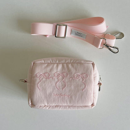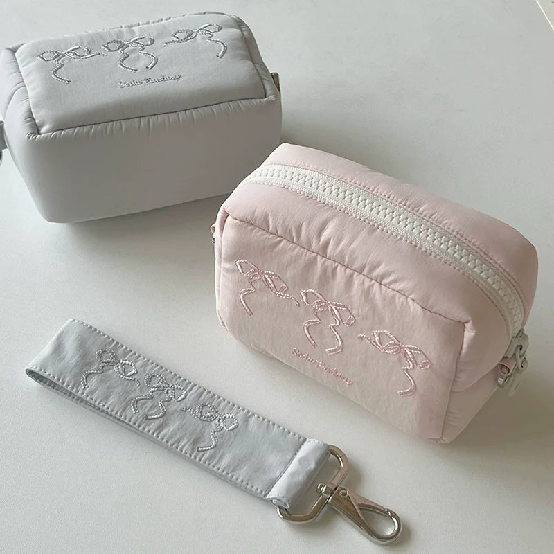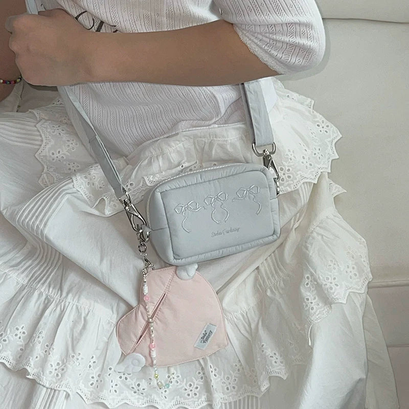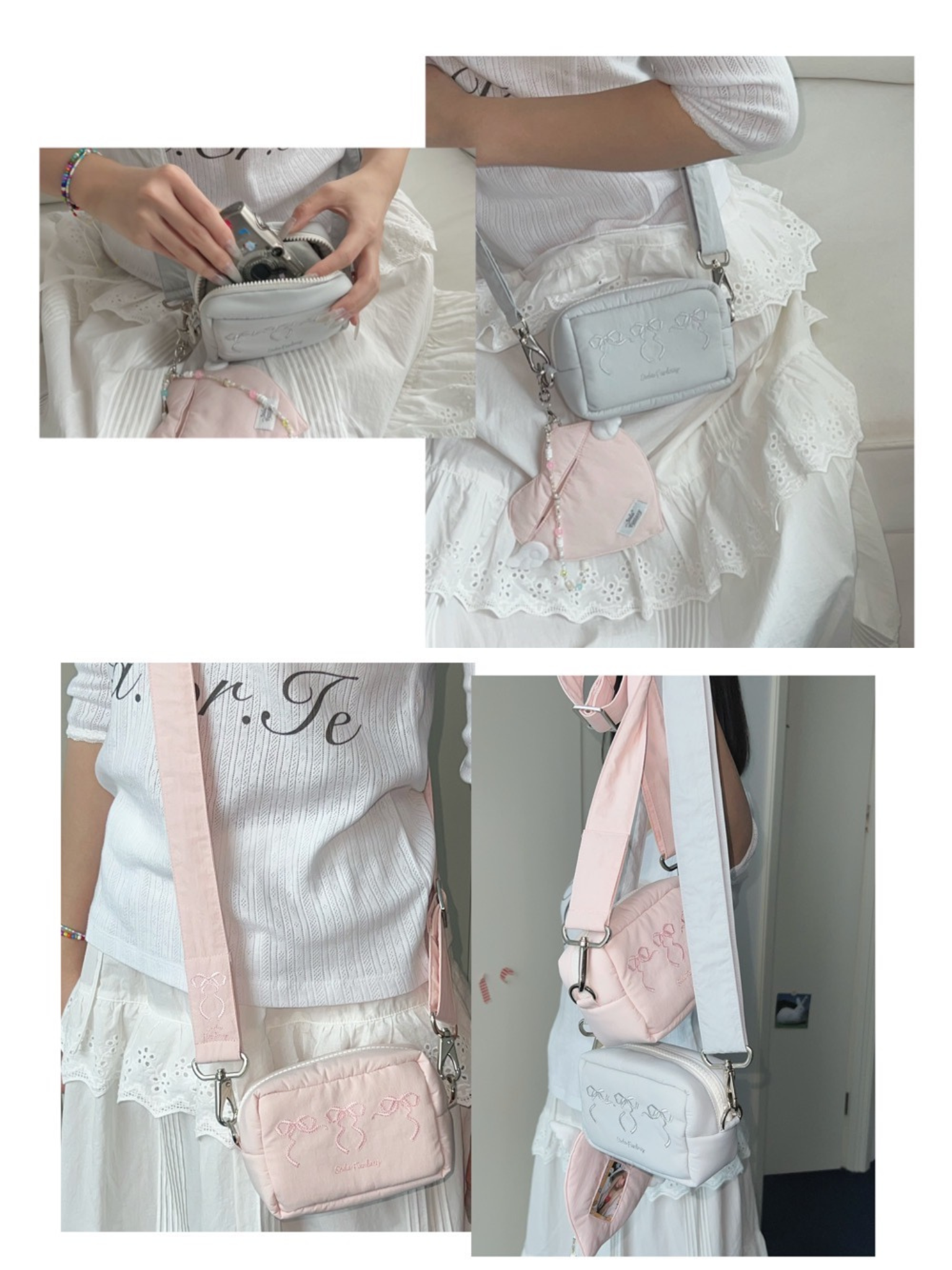 Designed with both style and function in mind, this adorable camera bag features delicate dancing bow embroidery and a soft pastel aesthetic that makes it perfect for fashion-loving creators on the go. Made from durable nylon on the outside and lined with plush velvet inside, it includes a shock-absorbing inner layer to protect your precious device.