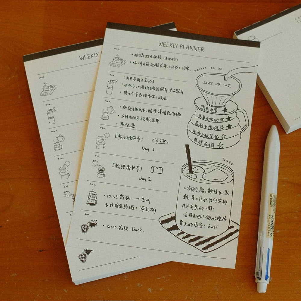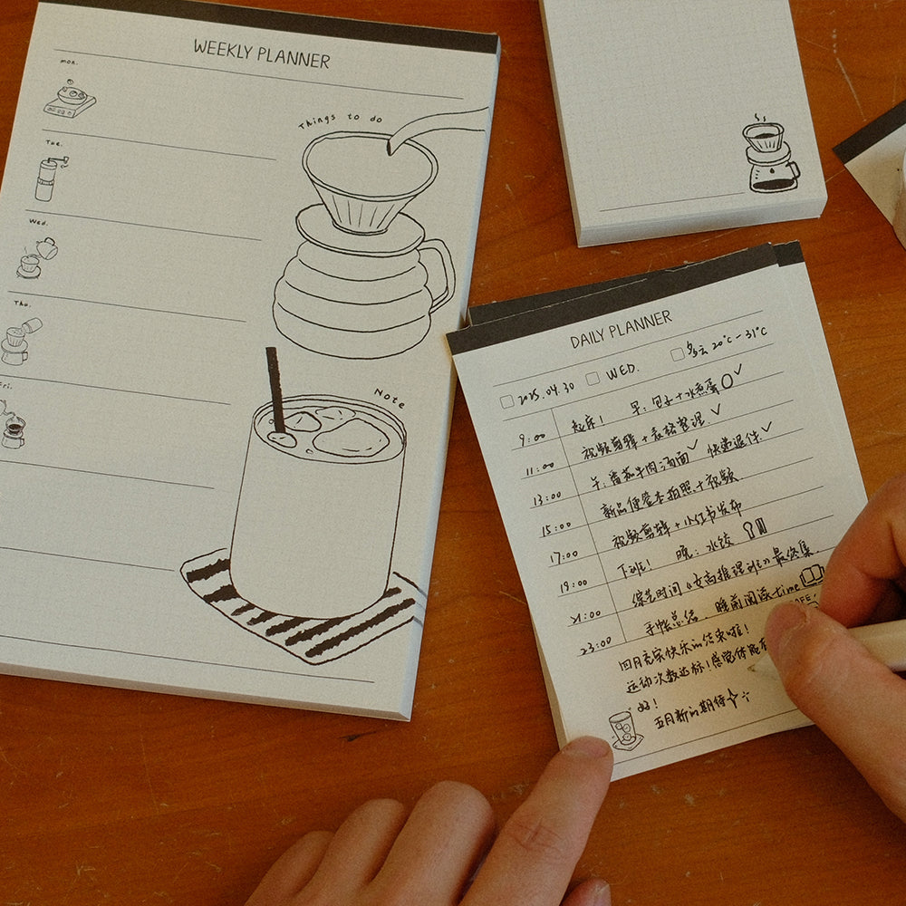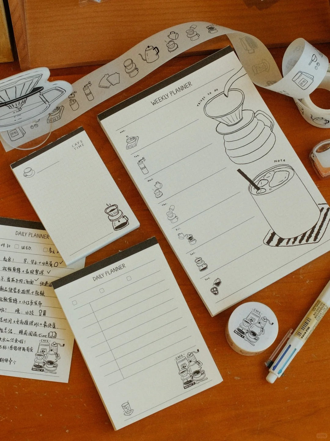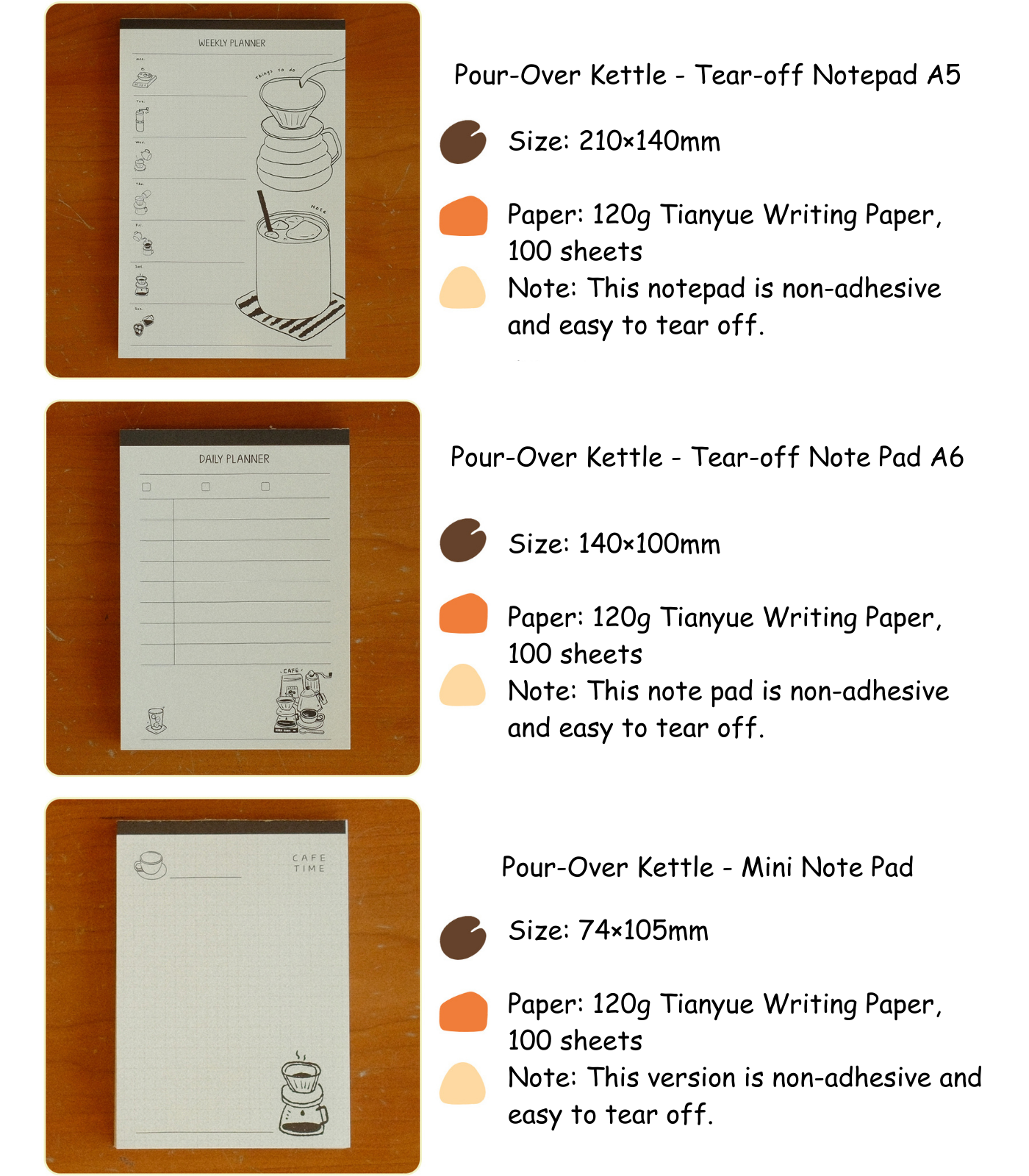 Inspired by the cozy ritual of hand-brewed coffee, this original tear-off notepad series brings charm and calm to your desk. Whether you’re planning your day, jotting quick notes, or leaving a thoughtful message, these pads combine functionality with delightful design.