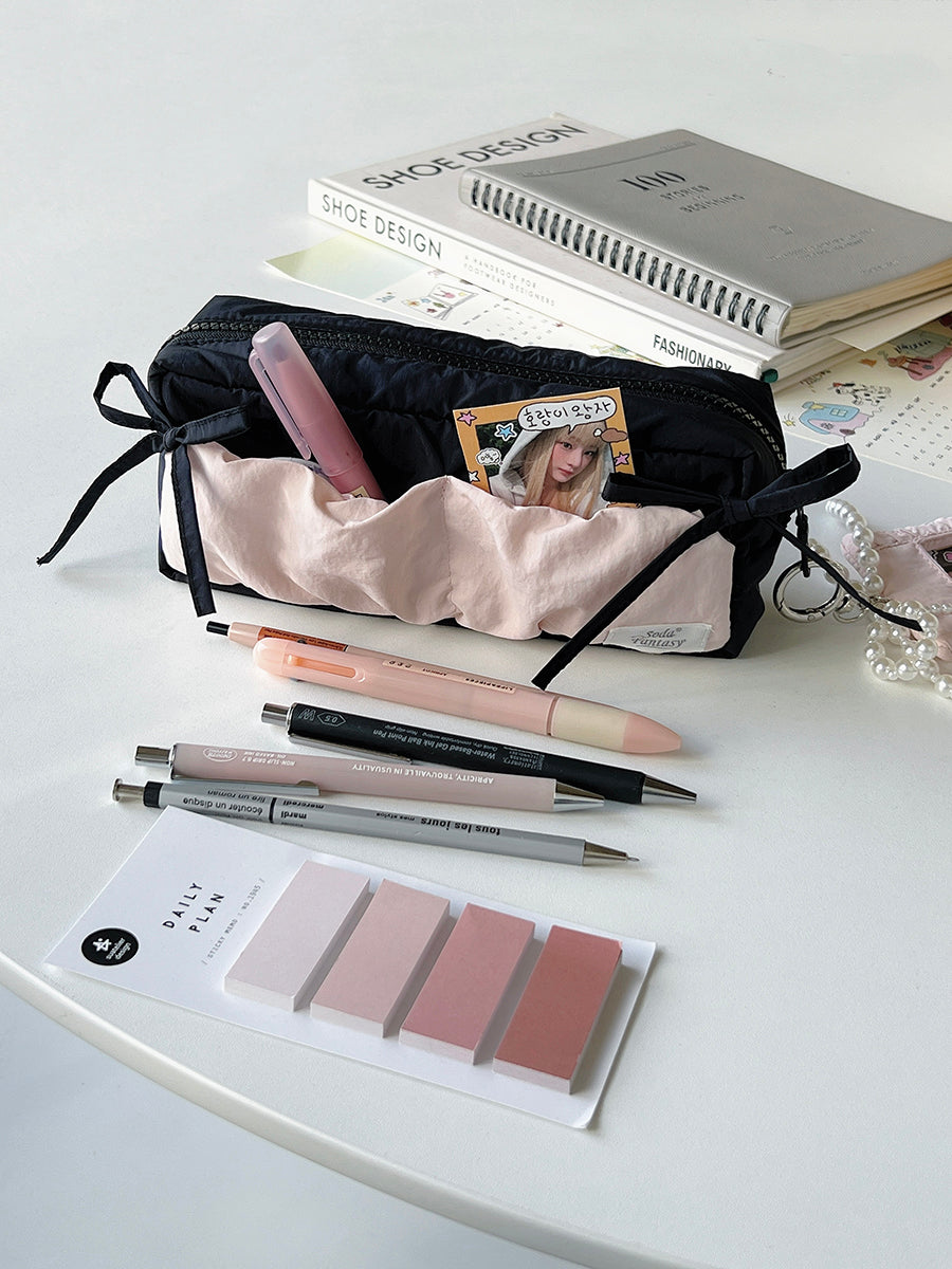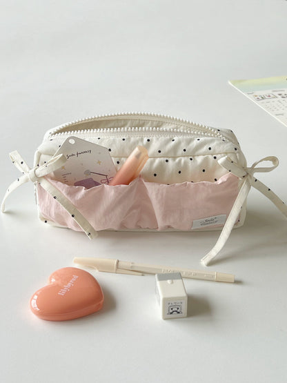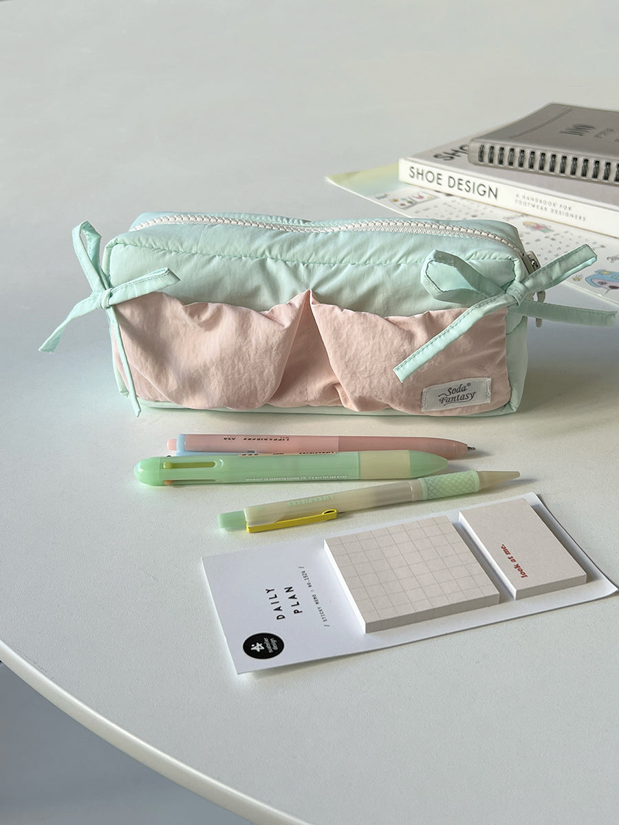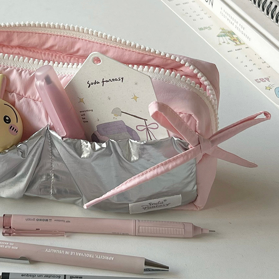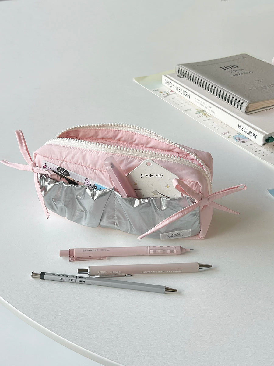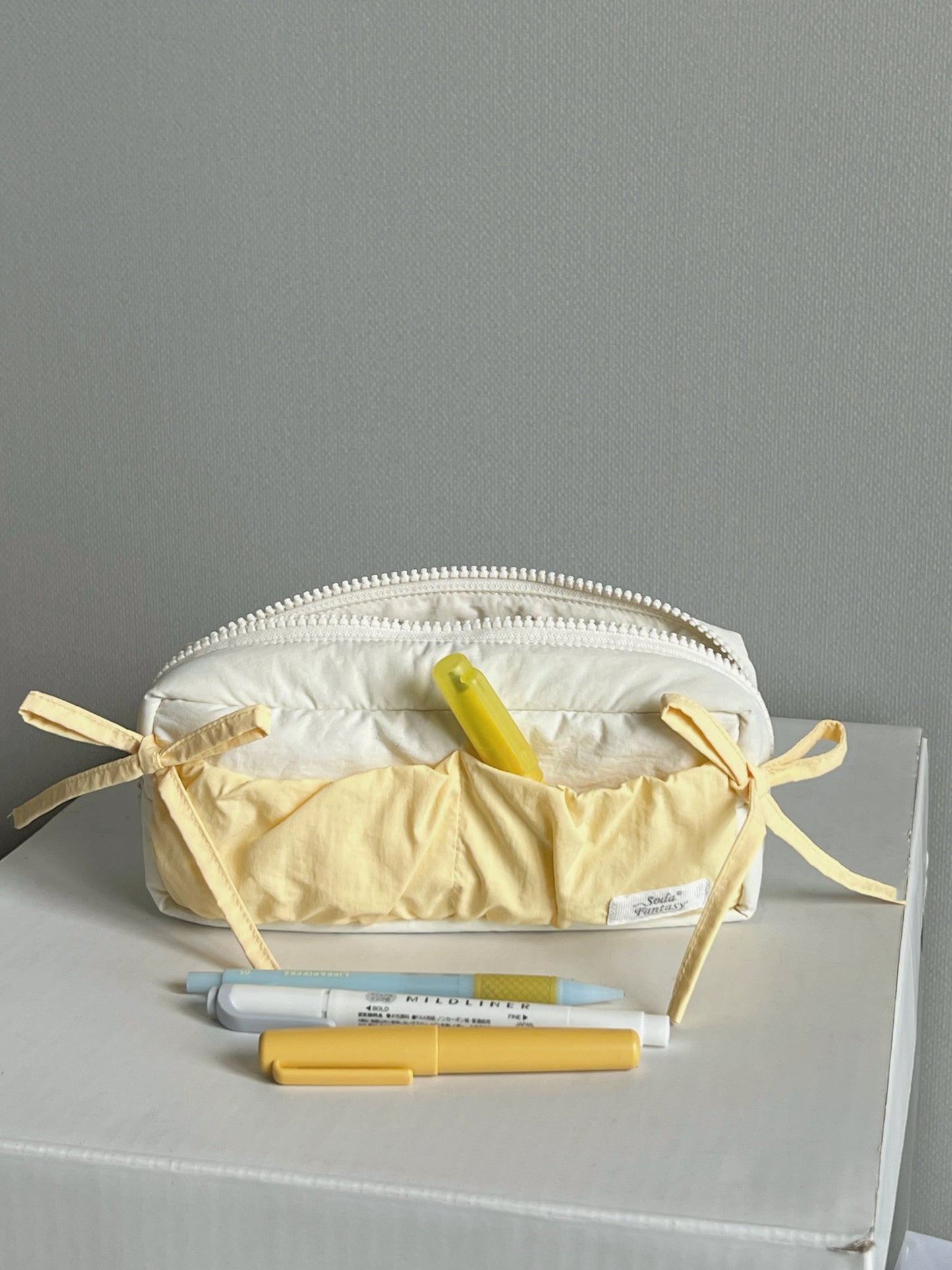 Crafted from durable water-resistant nylon, this charming pencil case features an adorable cloud-loaf shape adorned with a signature bow for that extra touch of personality. With its structured build and roomy interior, it comfortably fits around 40 pens β making it the perfect companion for students, journal lovers, and anyone who needs a little whimsy in their workspace.