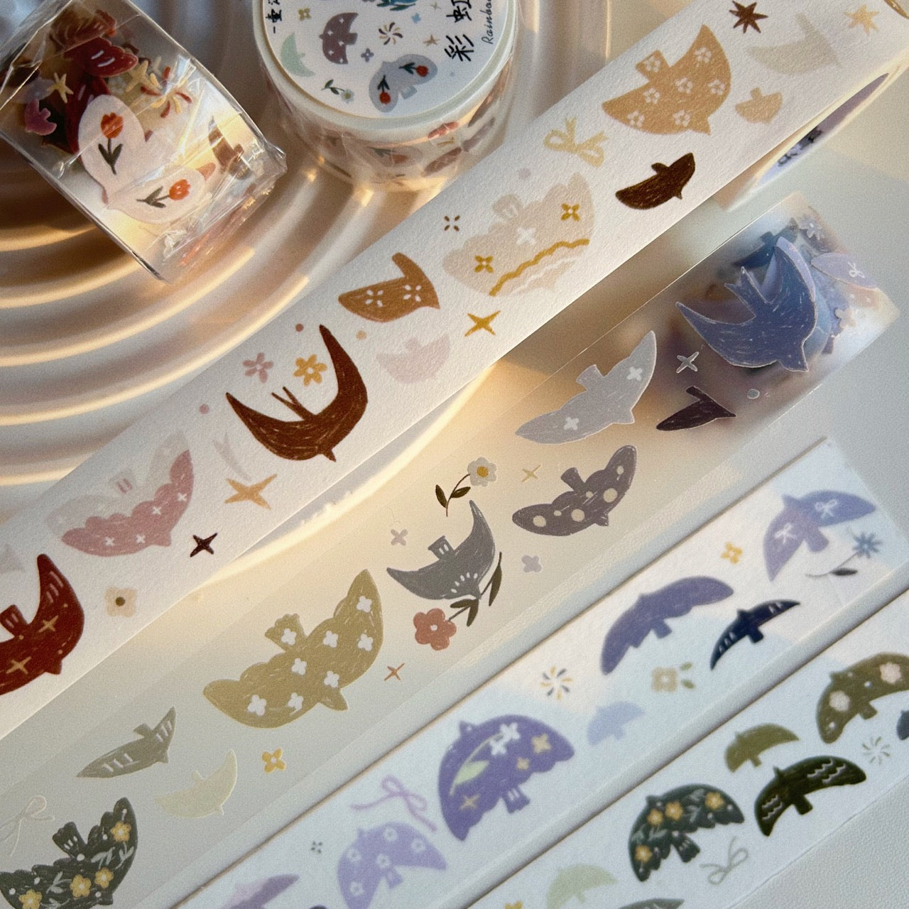 Rainbow Birds – Light Retro Washi & Matte PET Tape