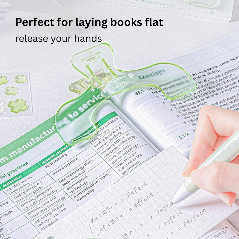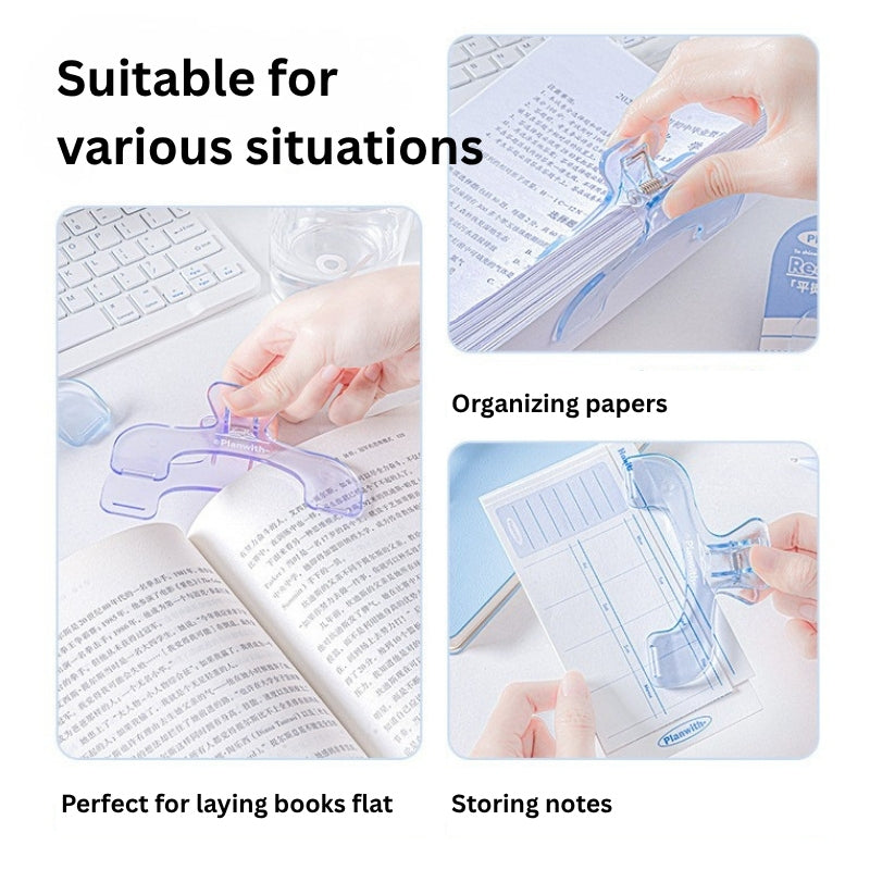 | Multi-Functional Use | Designed for Flattening books, Organizing test papers, and Securing notes/memos. | Ultimate Study Tool: A versatile clip that keeps your study area organized and your materials easily accessible in any scenario. |