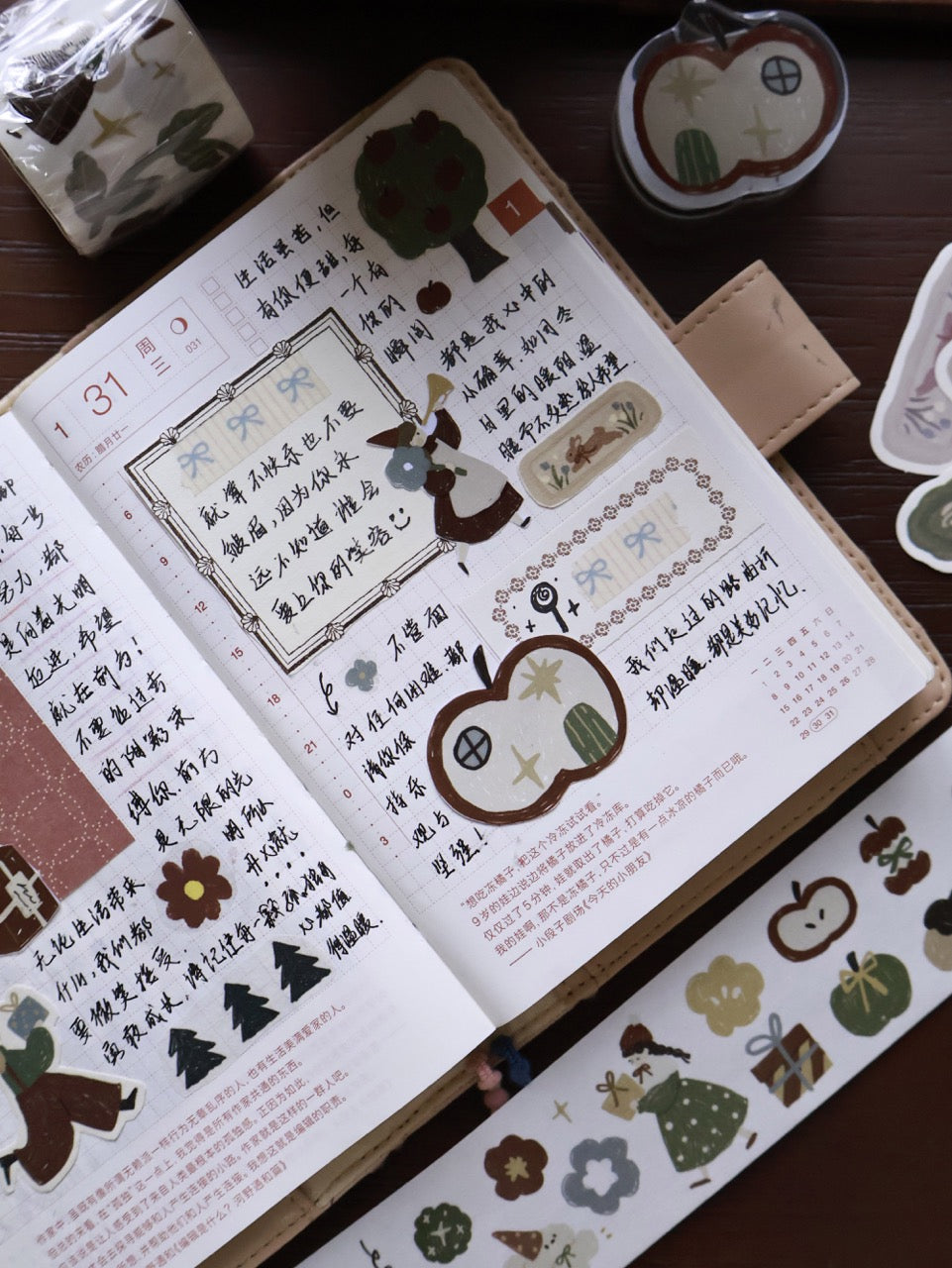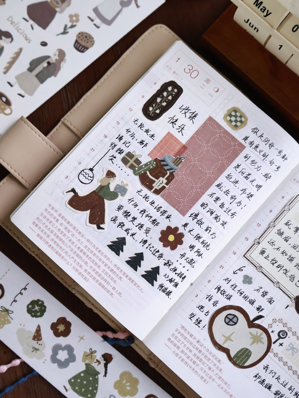 | Theme & Style | Light Retro, "Salt-Style" Aesthetic. Hand-drawn illustrations of a cozy Vintage Christmas Party. | Unique Appeal: Offers a warm, slightly subdued retro look that stands out from typical bright holiday decor, perfect for elegant journaling. |