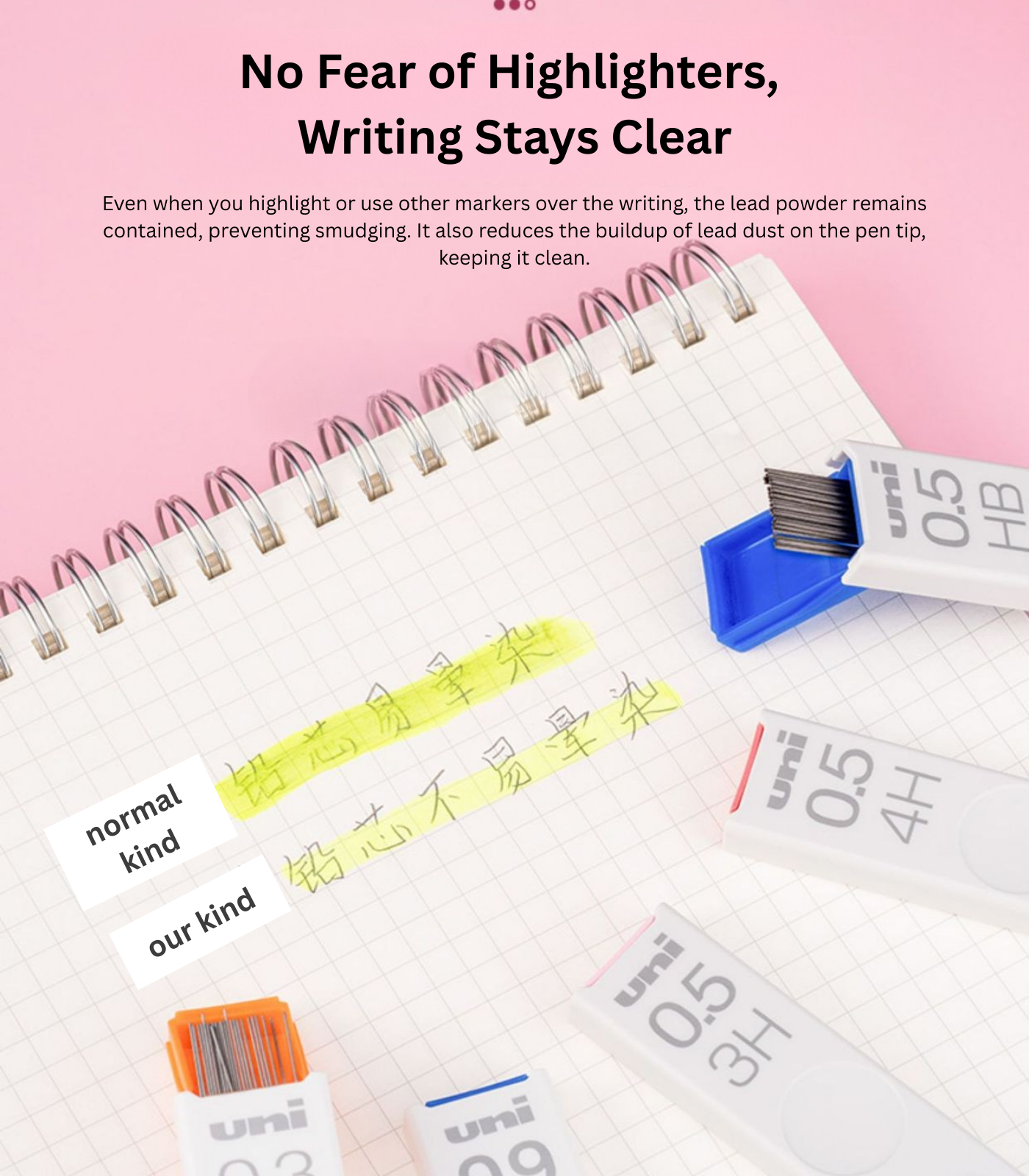 - Smudge-Proof Technology: The unique blend of materials ensures that the lead adheres tightly to the paper surface, preventing smudging even when using highlighters or markers. Your writing remains crisp and clean!