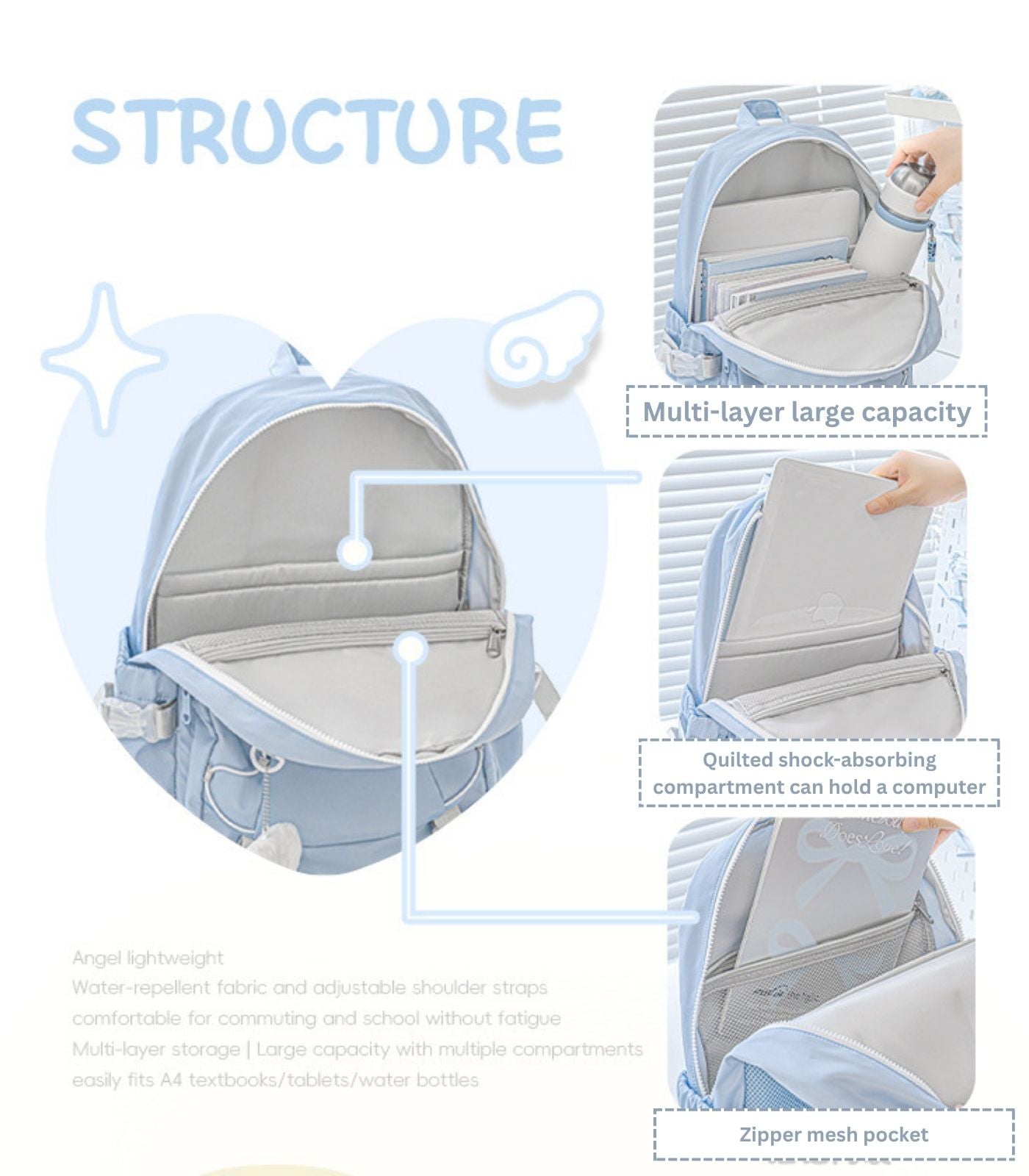 Carrying heavy textbooks, water bottles, and gadgets all day can be exhausting — especially with a bag that digs into your shoulders or has no room to stay organized. That’s why we created the Wingwing Angel Wings Backpack: a lightweight, breathable, and ultra-cute backpack that keeps you comfy and stylish from morning homeroom to after-school plans.